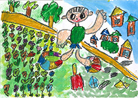 街のゴミ取り、ゴミ集めは得意だよ!きみどりくん |