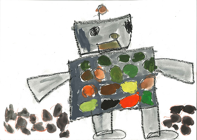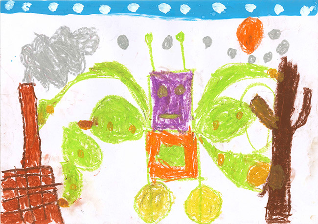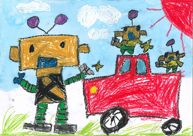 【銅賞】 うしまるれいさ さま (うぬま第一幼稚園) 画題「森をきれいにするロボットだよ。」 |
