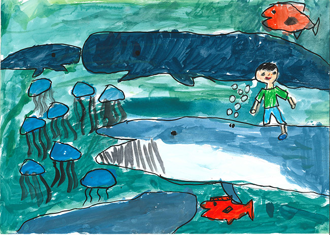 【銅賞】 三輪蒼介 さま (三柏株式会社) 画題「しんかいでくじらとおそうじ」 |