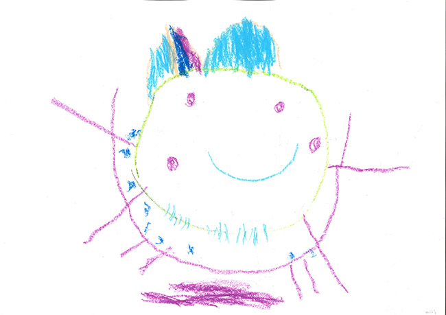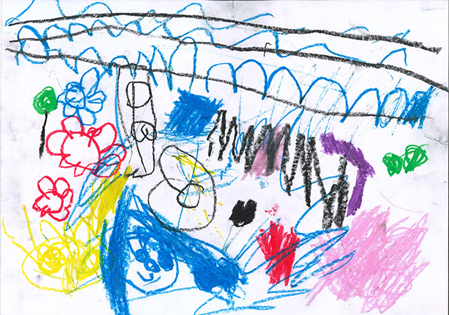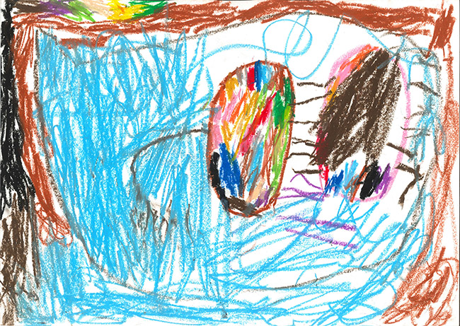 【銅賞】 へんみゆうき さま (合歓の木幼稚園) 画題「ちきゅうのまわりからゴミがないかみてるよ」 |