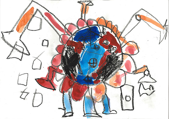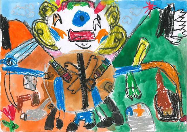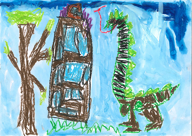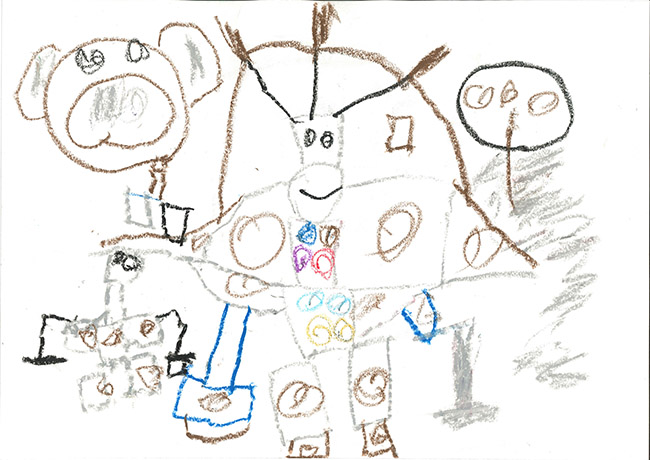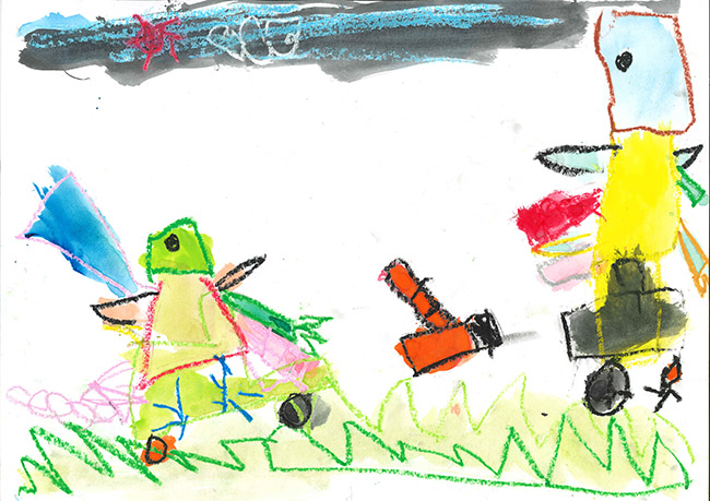 【銅賞】 井戸晴士 さま (みたけ幼稚園) 画題「きょうりゅうロボット」 |