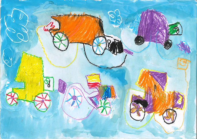 【銅賞】 いしまるあおい さま (うぬま第一幼稚園) 画題「車がゴミ拾いをするよ」 |