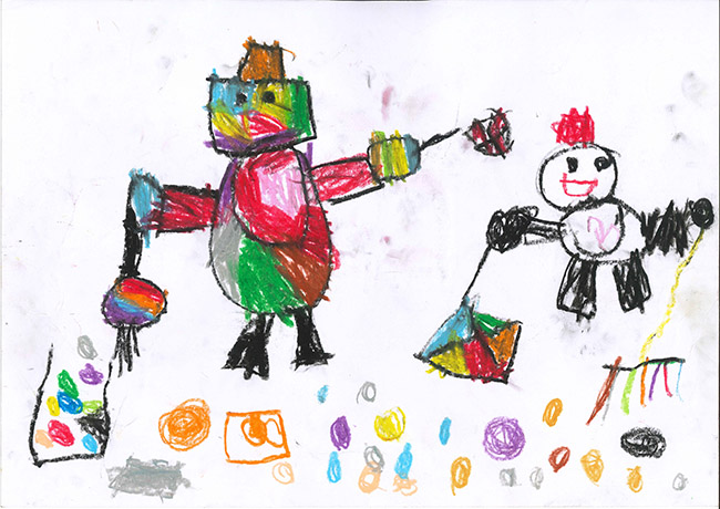 【銅賞】 よこやまことき さま (うぬま第一幼稚園) 画題「カラフルお掃除ロボット」 |