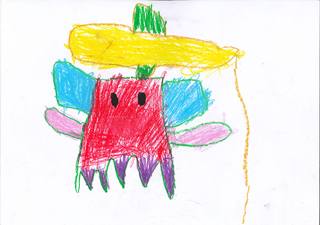 【銅賞】 しのだかのか さま (うぬま第一幼稚園) 画題「ゴミぱくぱくフラワー」 |