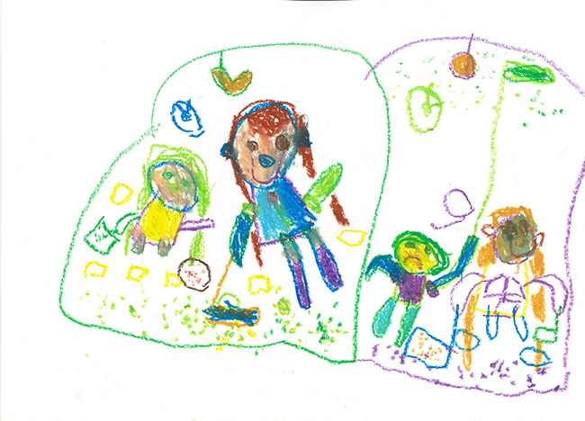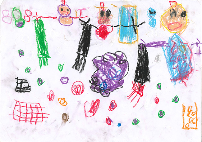 【銅賞】 せぎゆずか さま (うぬま第一幼稚園) 画題「お部屋のお掃除しているよ」 |