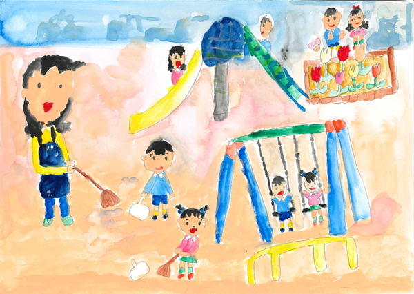 片山莉名 さま (桐が丘幼稚園) 画題「おそうじ」 |