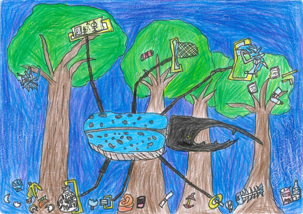 酒元尊都 さま (揖斐小学校) 画題「しんやに働く ゴミクレス」 |
