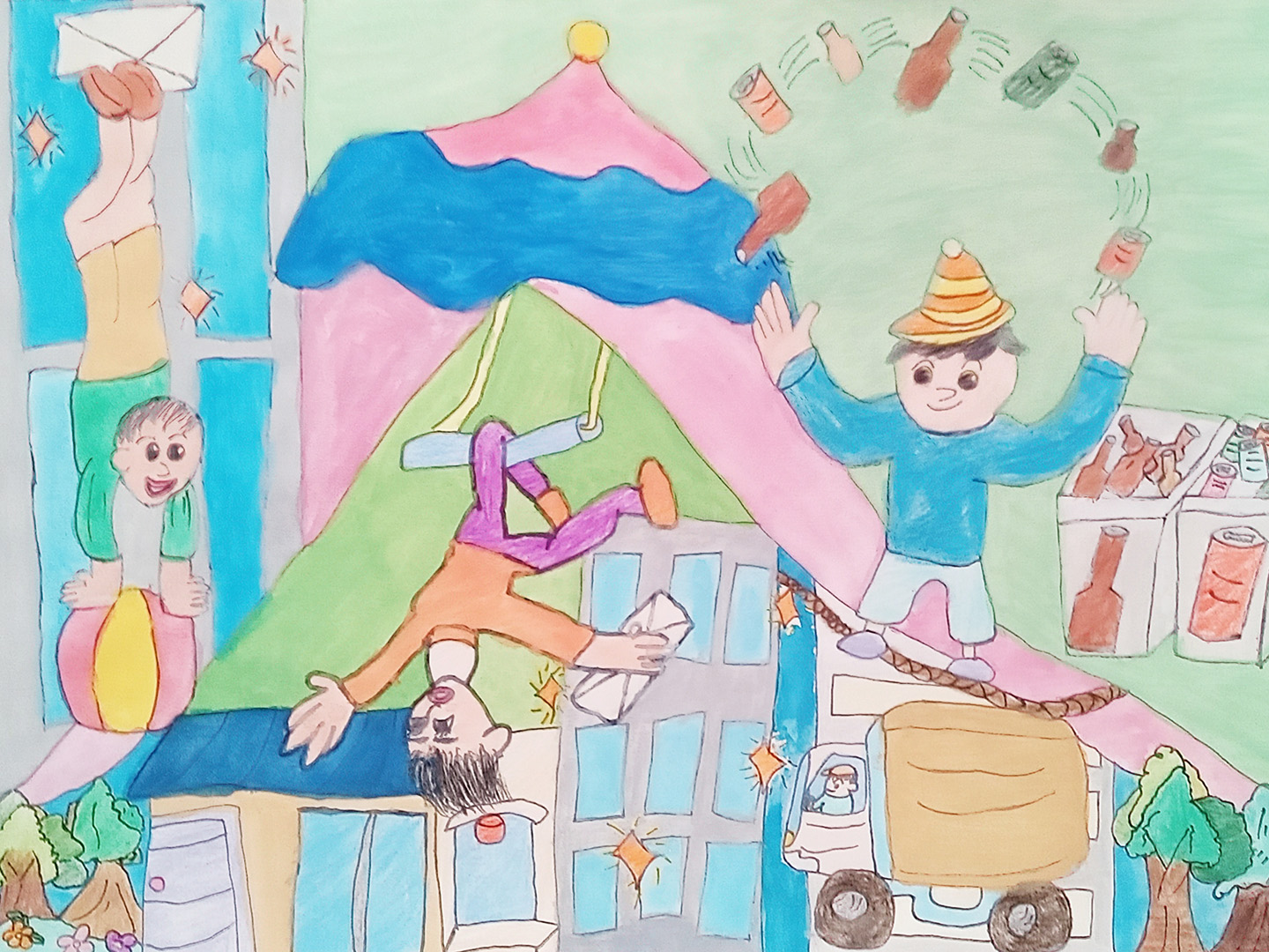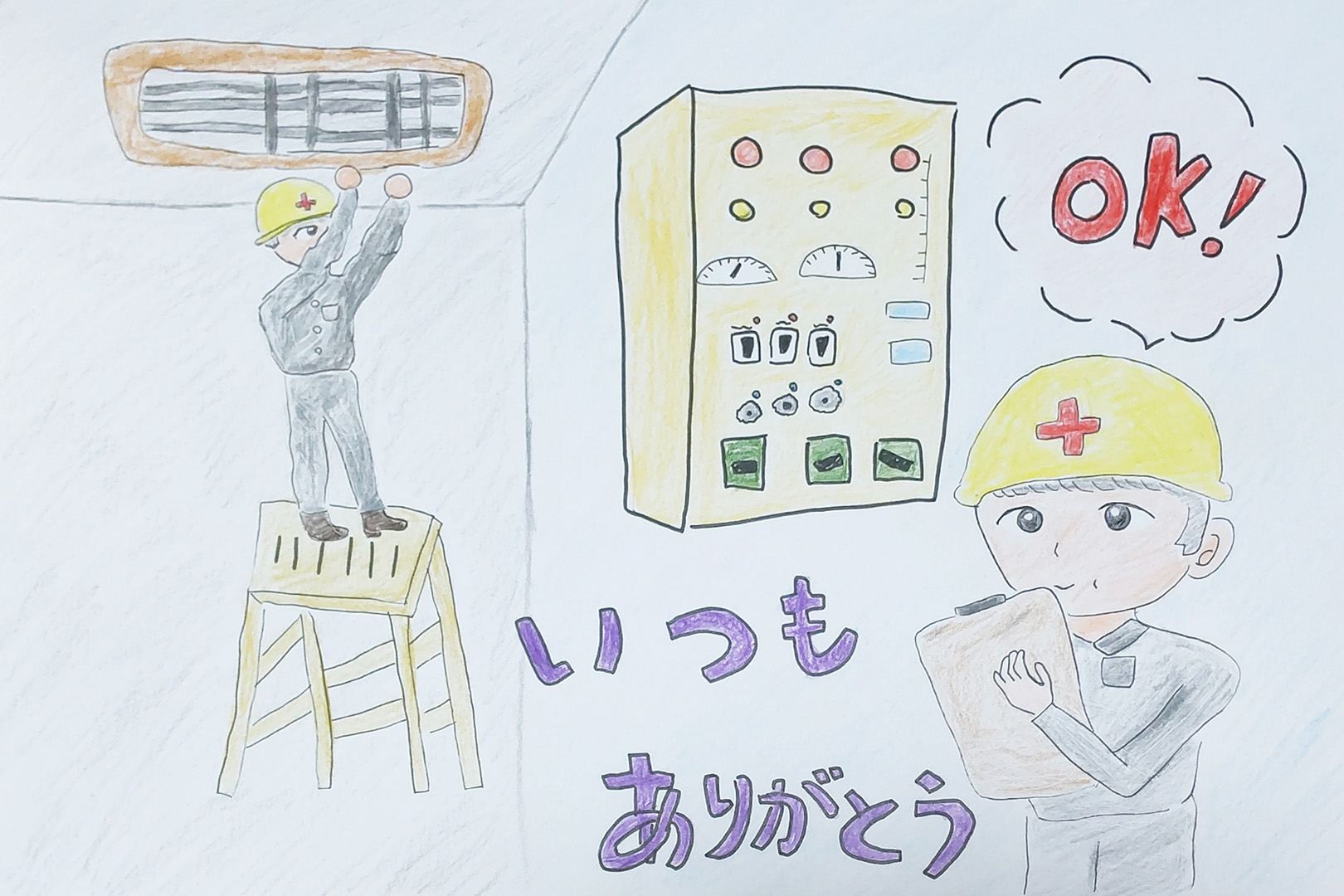 第19回ビルメンこども絵画コンクール[(公社)全国ビルメンテナンス協会主催]では、「未来のおそうじ/まちで見つけたビルメンテナンス」をテーマにお子様の描いた絵画作品を募集しました。広く全国から応募していただいた作品の中から、岐阜県下からの応募作品を独自に審査し、岐阜県入選作品を選出しました。